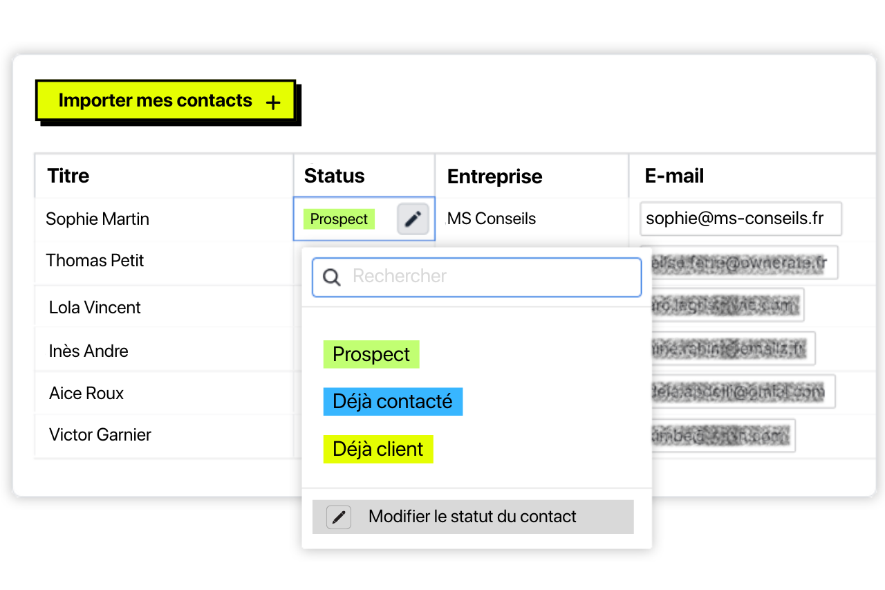 Avec Klape AI, vous importez votre base de contacts en quelques clics, et vous les transformez en opportunités.